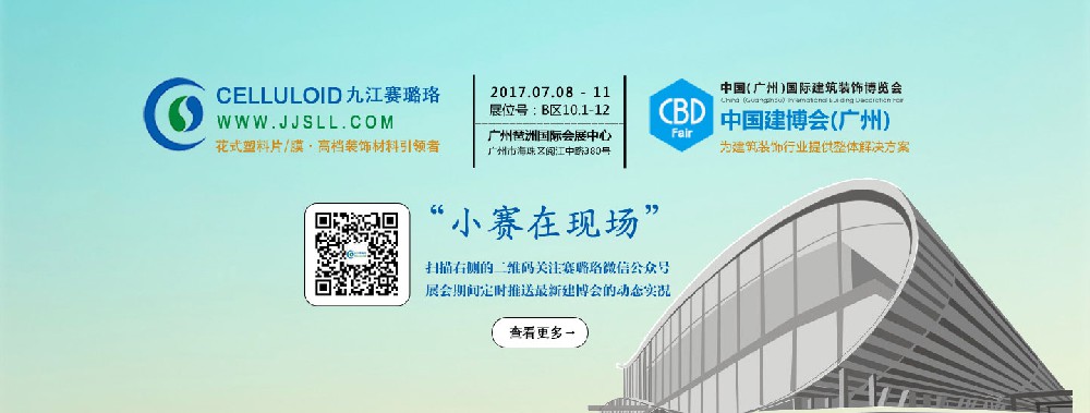歡迎大家關(guān)注九江賽璐珞實業(yè)有限公司微信公眾號,我司將參加2017年廣州建博會。我們將持續(xù)為大家?guī)斫ú钚聞討B(tài),更新時間為8號-11號。每天一更!